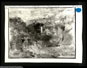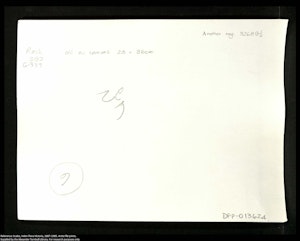 The cards in this file are undated. Correspondence B. de Lange and Kimberley Stephenson, Research Librarian Pictorial, Alexander Turnbull Library, September 2025, notes, “Neither the associated copy negatives nor the file prints are dated but based on notes I found in the negative register one group (intermittent between 1/2-092380-F and 1/2-092705-F) was in existence by May 1979, while a second group (intermittent between 1/2-162480-F to 1/2-162510-F) had been created by December 1986. Given most of the paintings entered the collection in 1979, this does suggest that the first group shows the works soon after they were accessioned. The second group appears to have been taken during reframing or conservation treatment as many are shown without their stretchers.” It is assumed that a card was made for this work at both dates, resulting in two copies noting similar information.