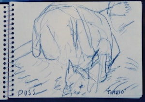 There is a cat, dated c.1976, in which the hand has its say as much as, if not more than the eye. It is much nearer to us than those competent horses of the first period of the artist’s life, parading so properly in their appearances which fit them like tight tunics, jerseys – or even wet-suits! This cat is lying so relaxed, hind feet away from us, that we hardly think of its appearance at all; or, if we do, only as an effect of the pulse of all creation. That its life and its appearance coincide so beautifully and easily, gives the latter a quality of comfortable, loose-fitting clothes being worn casually and yet with consummate style. Bravo, Flora! You were on the way, in these last paintings, to where life flows without interruption or impediment – even the impediment of having to paint it.”