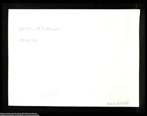The cards in this file are undated. Correspondence B. de Lange and Kimberley Stephenson, Research Librarian Pictorial, Alexander Turnbull Library, September 2025, notes, “Neither the associated copy negatives nor the file prints are dated but based on notes I found in the negative register one group (intermittent between 1/2-092380-F and 1/2-092705-F) was in existence by May 1979, while a second group (intermittent between 1/2-162480-F to 1/2-162510-F) had been created by December 1986. Given most of the paintings entered the collection in 1979, this does suggest that the first group shows the works soon after they were accessioned. The second group appears to have been taken during reframing or conservation treatment as many are shown without their stretchers.”